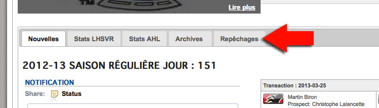 Archives maintenant disponible! 2013-05-01 Salut à tous, J'ai pas mal travaillé là-dessus... j'ai commencé à inclure les archives de la ligue sur le site. Vous pouvez y accéder en sélectionnant l'onglet Archives et Repêchages en dessous du bloc de nouvelles. Dans l'onglet Archives, vous trouverez les statistiques carrière (saisons/séries 1 à 10) avec le simulateur FHL, pour les joueurs et les gardiens. Je vais aussi ajouter bientôt, les stats détaillées par saison/séries. Dans l'onglet Repêchages, vous trouverez tous les repêchages de la ligue. Actuellement il n'y a que celui de l'an dernier mais je vais ajouter les autres bientôt. Éventuellement, je vais aussi ajouter un onglet Honneurs qui présentera tous les gagnants de trophées. J'espère que ça vous plaiera