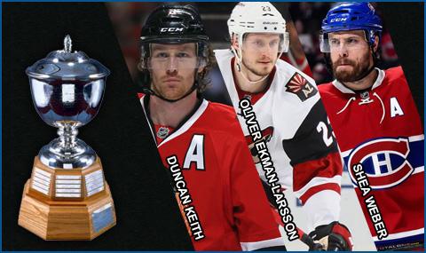 Les finalistes : Norris 2017-05-18 Le dévoilement des trophées et honneurs aura lieu le 21 juin prochain. Vous serez porté à voter une fois que tous les finalistes des trophées seront connus. Au courant du mois de mai, je vous partagerai les différents finalistes pour chacun des trophées. Voici les 3 finalistes pour le trophée Norris remis au défenseur de l'année Duncan Keith Oliver Ekman-Larsson Shea Weber