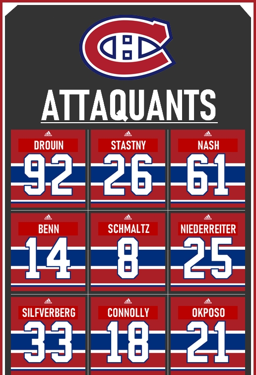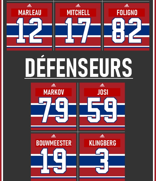 Alignement 2018-2019 des Canadiens 2018-09-23 Après le repêchage amateur, la signature d’Andreï Markov, transaction et une partie amicale contre le Wild du Minnesota, l’équipe pilotée par l’entraineur en chef Michel Therrien, termine sa préparation en vue de la prochaine saison. En plein camp d’entrainement l’organisation des Canadiens a décidé de procéder à des coupures de tous les joueurs qui ne feront pas partie de l’édition de 2018-2019 et ce le plus rapidement possible. Mais la question que tous se posent est pourquoi un geste aussi hâtif alors que le camp d’entrainement est toujours en branle ? La réponse à cette question est venue lors du passage du directeur général à l’émission du Tonight Show avec Jimmy Fallon. Rick a bien voulut répondre à toutes les questions concernant cette surprenante décision. « Nous avons toujours pris le temps dans le passé d’évaluer tous nos jeunes joueurs lors des derniers camps d'entrainement. Jack Roslovic, Klim Kostin, Ondrej Kase, Devon Towes et Connor Hobbs ont été les derniers joueurs retranchés cette semaine. D’ailleurs nous sommes persuadés que certains d’entre eux pourront se tailler un poste la saison prochaine. La raison que nous avons décidé d’avoir notre équipe entière dès maintenant est fort simple. Dans un premier temps parce que la ligue pense peut-être annuler la pré-saison, ce qui honnêtement ne me plaît pas du tout, et deuxièmement parce que nous devons de créer le plus rapidement possible une chimie entre nos nouveaux joueurs et les anciens déja en place. Cette annulation complique grandement les choses pour notre organisation, car nous avons des nouveaux joueurs qui peuvent jouer à plusieurs positions différentes et rien de mieux que des parties hors-concours pour évaluer ceux-ci. Pour vous donner un exemple, Nick Schmaltz fera ses débuts avec nous cette année, mais il est difficile pour nous de dire si la chimie entre lui, Benn et Niederreiter seront la bonne combinaison. Nous avons suggéré à la ligue de diminuer les nombres de parties en saison régulière pour qu’on puisse bénéficier de quelques joutes hors concours, mais je doute que la ligue accepte notre requête. Dans tous les cas, il va de soi que notre équipe respectera la décision de l’état-major de la LHSVR. » Voici pour le moment en ce qui a trait à l’alignement de départ des Canadiens de Montréal lors de l’ouverture du premier match de la saison 2018-2019.