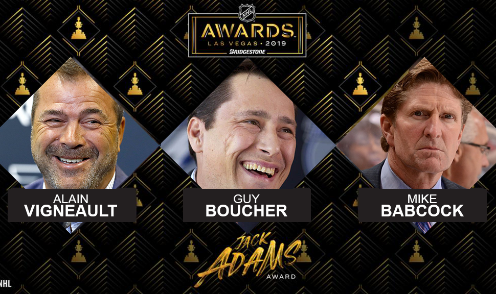 RÉSULTATS - Honneurs 2019 2019-06-19 Ce soir, dès 19h30, j'annoncerai LIVE les récipiendaires des différents honneurs 2019 de la LHSVR. -------------------------- TROPHÉE HART GAGNANT : SIDNEY CROSBY (Tampa Bay Lightning) TROPHÉE WILLIAM JENNINGS JONATHAN BERNIER / ANTON KHUDOBIN (Tampa Bay Lightning) TROPHÉE VEZINA GAGNANT : JONATHAN BERNIER (Tampa Bay Lightning) TROPHÉE JACK ADAMS GAGNANT : ALAIN VIGNEAULT (Vancouver Canucks) TROPHÉE MAURICE RICHARD SIDNEY CROSBY (Tampa Bay Lightning) TROPHÉE SELKE GAGNANT : SEAN COUTURIER (Detroit Red Wings) TROPHÉE GM BILL MASTERTON GAGNANT : ANDREW DUPUIS (Detroit Red Wings) TROPHÉE NORRIS GAGNANT : SHEA WEBER (Tampa Bay Lightning) TROPHÉE TED LIDSAY SIDNEY CROSBY (Tampa Bay Lightning) TROPHÉE GM OF THE YEAR GAGNANT : ERIC PEPIN (Montreal Canadiens) TROPHÉE LADY BING GAGNANT : TYLER JOHNSON (Edmonton Oilers) TROPHÉE ART ROSS SIDNEY CROSBY (Tampa Bay Lightning) TROPHÉE CALDER GAGNANT : BRAYDEN POINT (Anaheim Ducks)